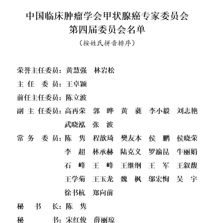 中国临床肿瘤学会(CSCO)甲状腺癌专家委员会名单