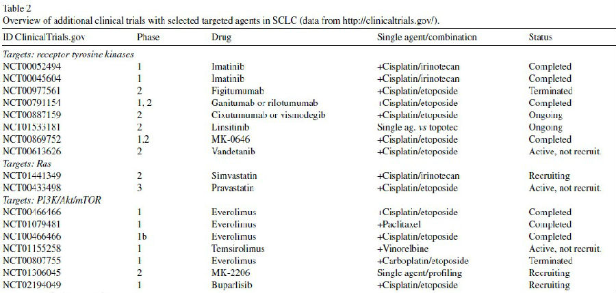 然而到目前为止,这些靶向治疗方法在临床试验中仅取得了有限的成功。靶向治疗小细胞肺癌的进一步优化进展将需要对患者更加个体化的治疗方案。希望全基因组测序的最新进展,将有助于改善针对SCLC患者个体基因背景的靶向药物治疗。