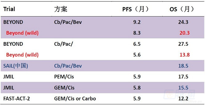 从上表中国所做的临床试验结果可以看出,目前,卡铂+紫杉醇+贝伐珠单抗的联合对晚期肺腺癌尤其是EGFR野生型患者可带来最佳的获益。