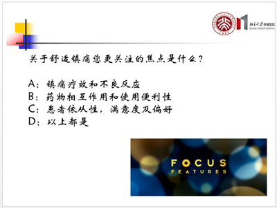 我想再次强调,在经典的三阶梯镇痛中,吗啡、芬太尼透皮贴剂和羟考酮三种药物疗效类似,但不良反应不同,因此适用于不同的患者。作为一个好医生,将right durg在right time 用于right patient,是我们一直以来应该挑战的目标,尊重患者的选择也是必须考虑的重要方面。