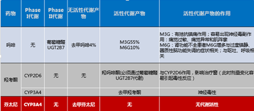 芬太尼主要代谢产物为无活性去甲芬太尼,无代谢活性,适合长期用药。