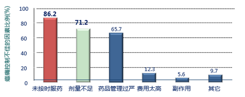 患者的依从性和镇痛药物剂量是影响癌痛治疗的关键因素,一项研究对上海市76所医院的1115位医师及923位癌痛患者分别进行问卷调查,结果影响患者镇痛治疗的主要因素如下图所示: