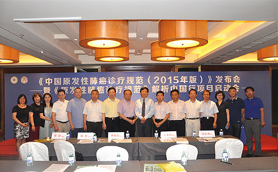 2015年7月30日,由国家卫生计生委《中国原发性肺癌诊疗规范》专家委员会和北京医学奖励基金会牵头主办的《中国原发性肺癌诊疗规范(2015年版)》(以下简称规范)发布会暨《原发性肺癌诊疗规范》解析中国行项目启动会在北京圆满落幕。出席此次会议的有国家卫生计生委医管中心赵明钢主任、国家卫生计生委医管局李大川处长、专家委员会顾问赫捷院士、专家委员会主任委员于金明院士、石远凯教授和支修益教授,以及来自流行病学、胸外科、肿瘤科、呼吸科、影像科、病理科、检验科和癌症康复领域的43位专家。