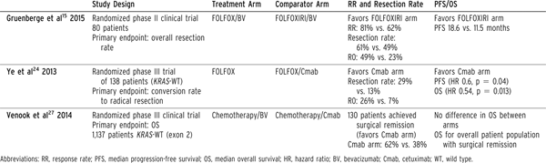 [26]Folprecht G, Gruenberger T, Bechstein WO, et al. Tumour response and secondary resectability of colorectal liver metastases following neoadjuvant chemotherapy with cetuximab: the CELIM randomised phase 2 trial. Lancet Oncol. 2010;11:38-47.