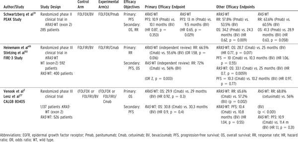 表5EGFR靶向在KRAS-野生型转移性结直肠癌的二线治疗