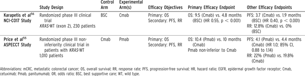 [28]Price TJ, Peeters M, Kim TW, et al. Panitumumab versus cetuximab in patients with chemotherapy-refractory wild-type KRAS exon 2 metastatic colorectal cancer (ASPECCT): a randomised, multicentre, open-label, non-inferiority phase 3 study. Lancet Oncol. 2014;15:569-579.