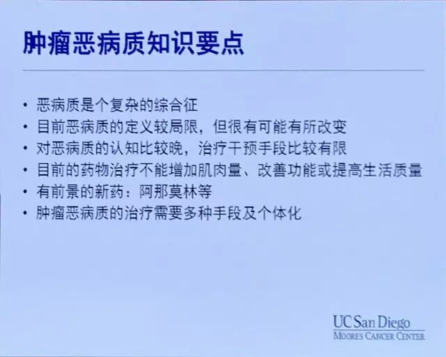 ROELAND教授:因为肿瘤恶病质是肿瘤最常见的临床并发疾病之一,与肿瘤患者的管理与治疗密切相关。更重要的是,当肿瘤恶病质发生的时候,会对积极治疗的干预手段的强度造成消极影响。