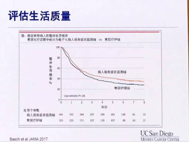 在今年刚刚结束的ASCO2017上的全体报告上,Basch教授等的研究证明,如果应用手机等移动设备软件对患者的症状进行动态监测,发现早期症状及时进行处理,可以明显改善肿瘤患者的生存结局。