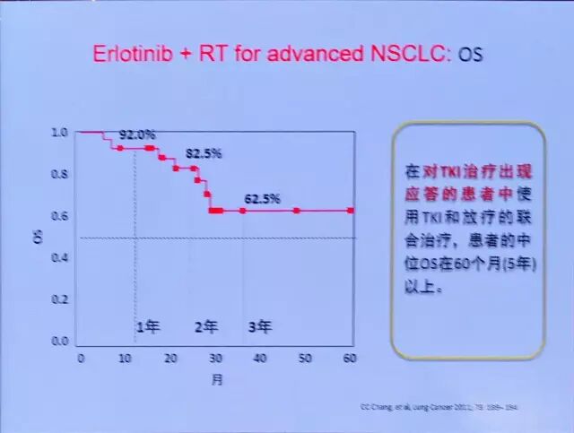 而OS方面,在对TKI治疗出现应答的患者中使用TKI和放疗联合治疗,中位OS在60个月(5年)以上。