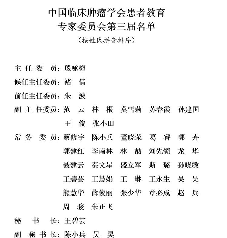 中国临床肿瘤学会(CSCO)患者教育专家委员会名单